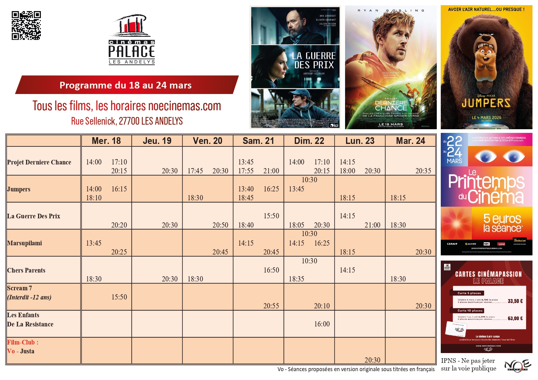Réservez vos places ou vos cartes